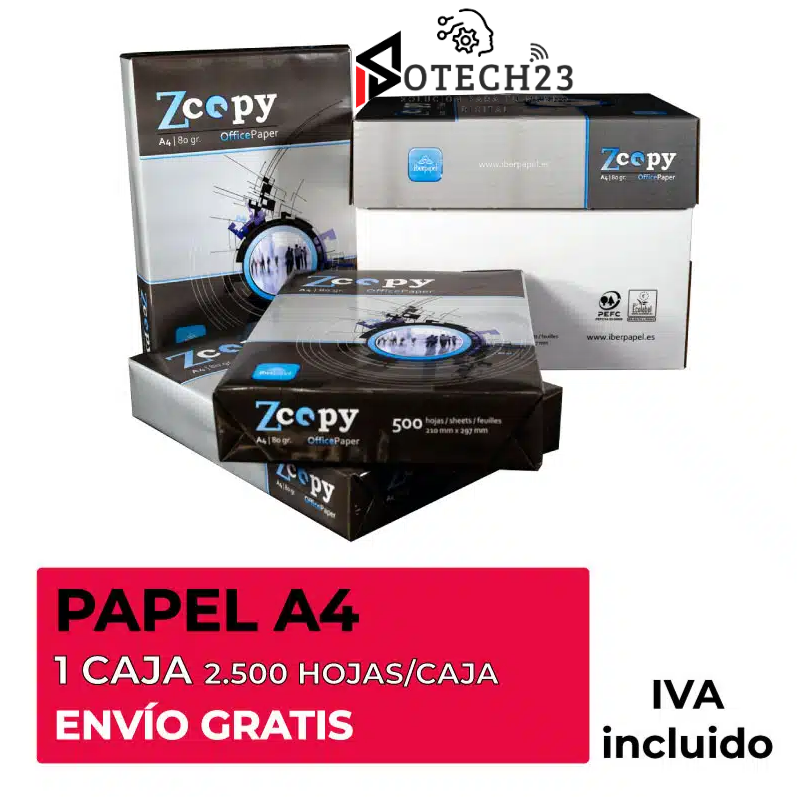 1 Caja de 2500 Hojas/Caja ZCopy Papel Multifunción. Tamaño Din-A4 con grosor de 80 gramos. Cada caja contiene 5 paquetes de 500 hojas cada una.